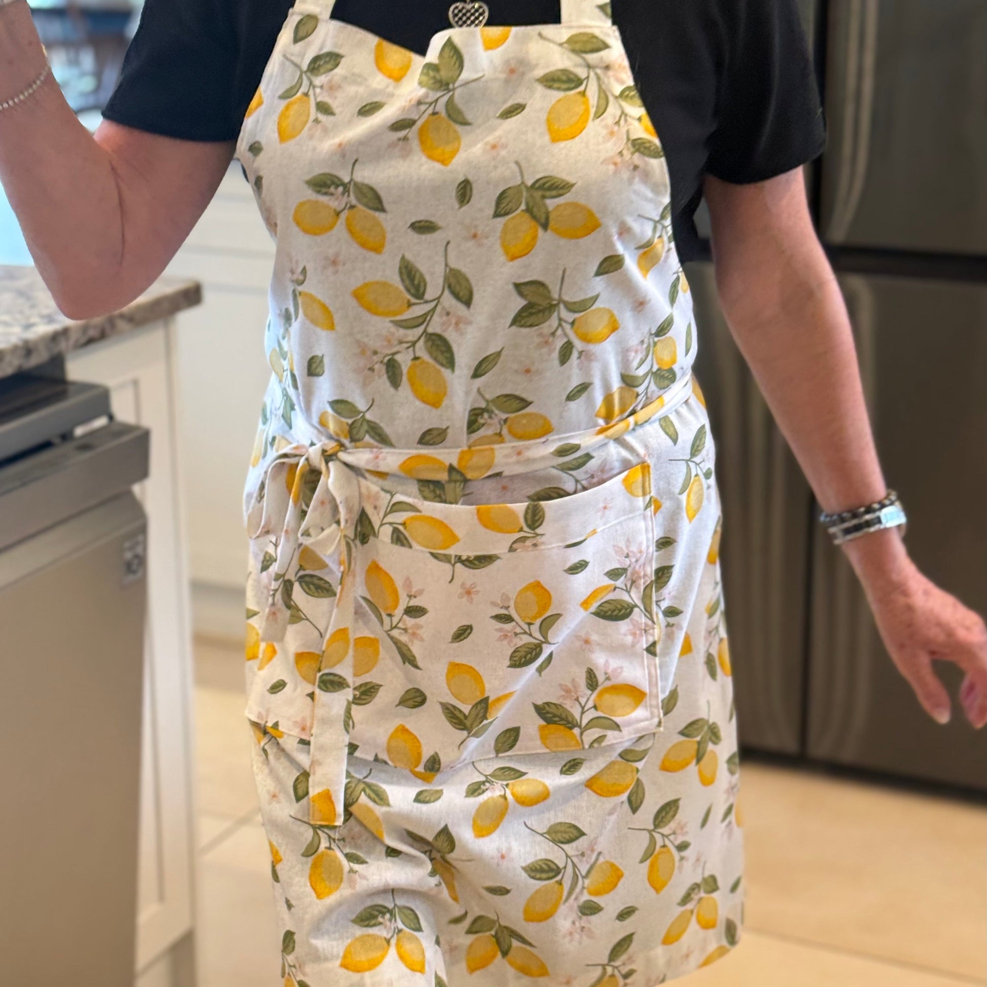 The Portofino Apron, crafted from a premium linen-cotton blend, combines durability with breathability for all your kitchen tasks. Featuring a vibrant lemon design and lined pocket, it adds a fresh, stylish touch while protecting your clothing.